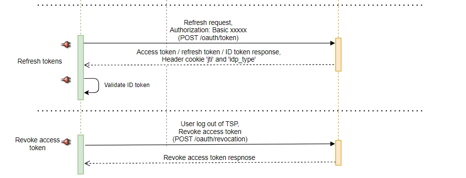 When the user close the browser without logging out and later re-enter the TSP webpage, he can use cookies to obtain a new access token. This allows the user to access the TSP system without having to log in again.