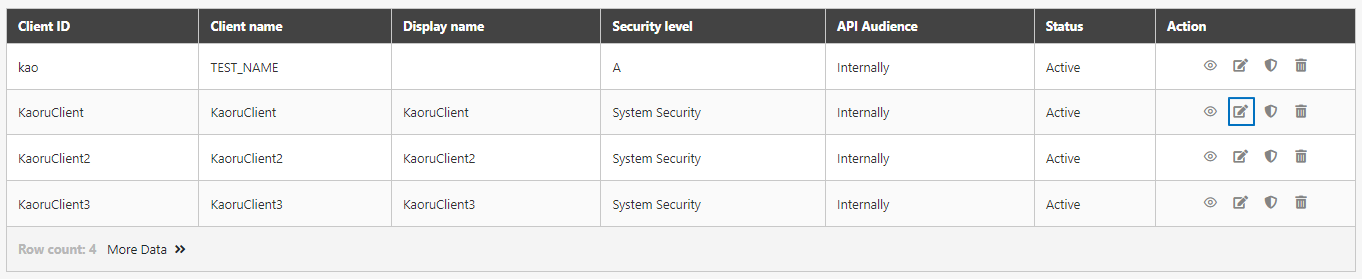 Search for the client to modify, and click on the icon to access the update page.