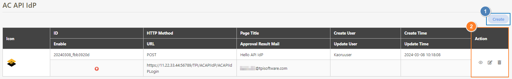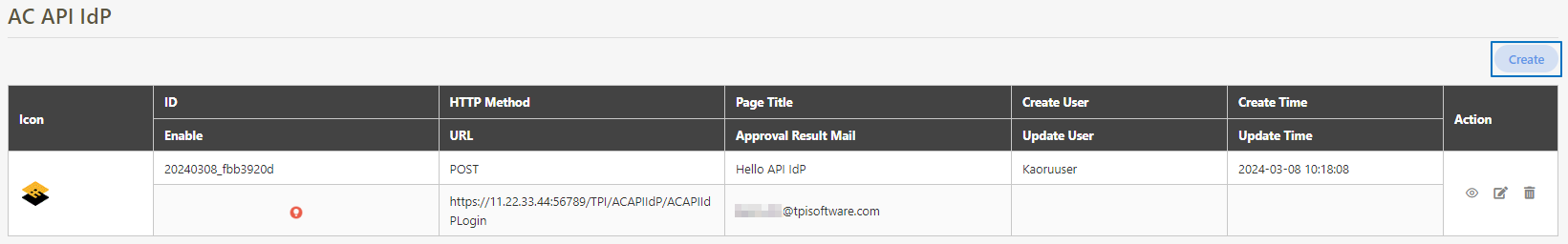 Click Create to access the AC API IdP creation page.