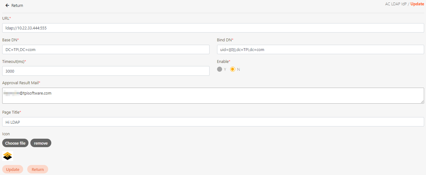 Icon: Click Choose file to select and upload an identifiable LDAP image.