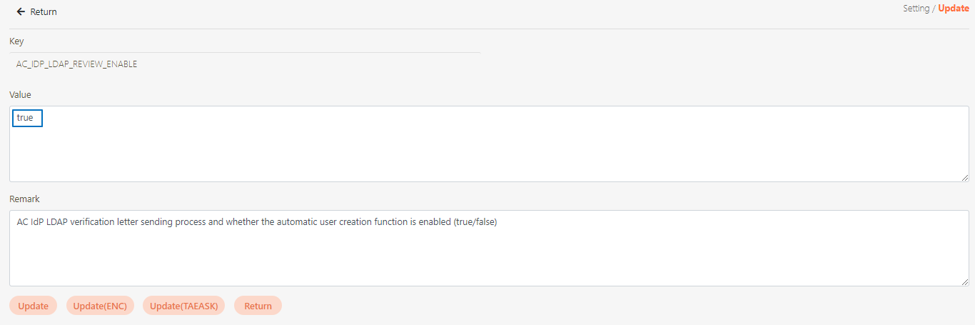 Go to System Configs > Setting, look for AC_IDP_LDAP_REVIEW_ENABLE, and check whether the value is true.