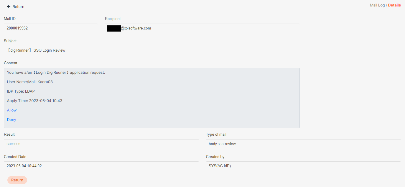 Go to System Information > Mail Log to check whether an approval letter has been sent.