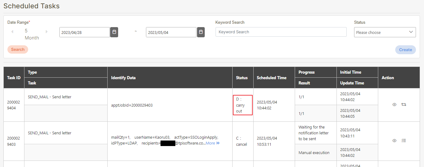 Go to System Information > Scheduled Tasks to check whether the approval letter has been sent, and the process has been completed.