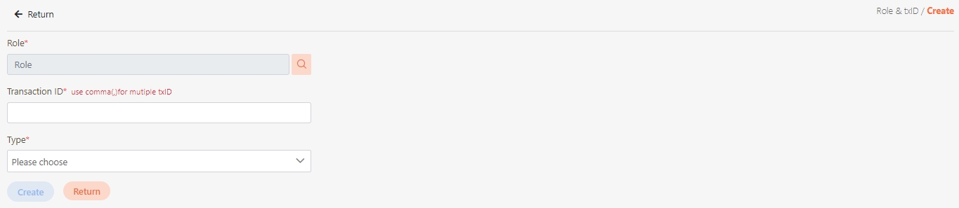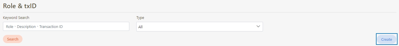 Click Create to access the role & txID creation page.