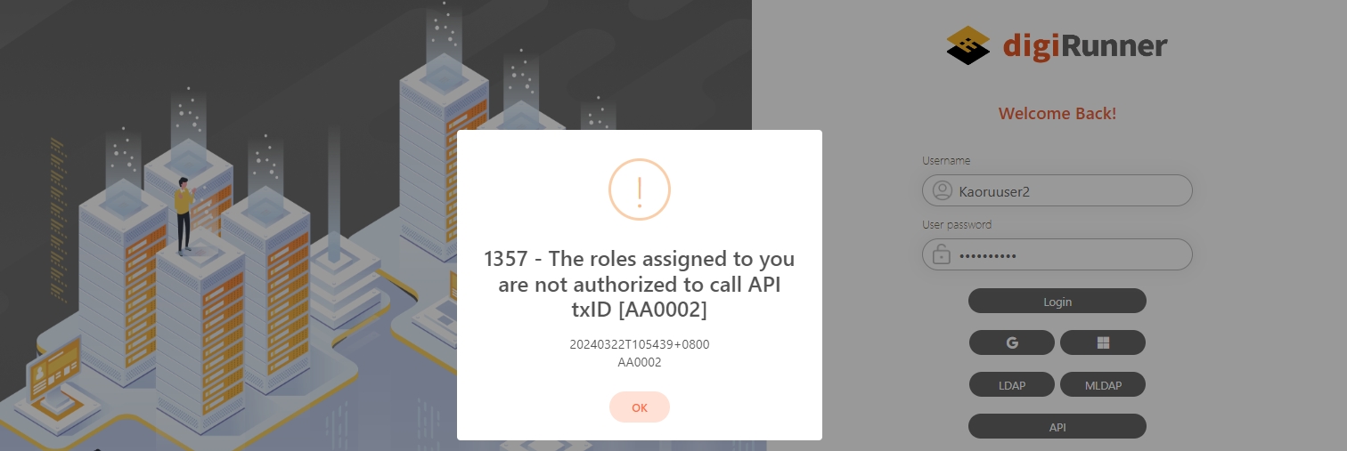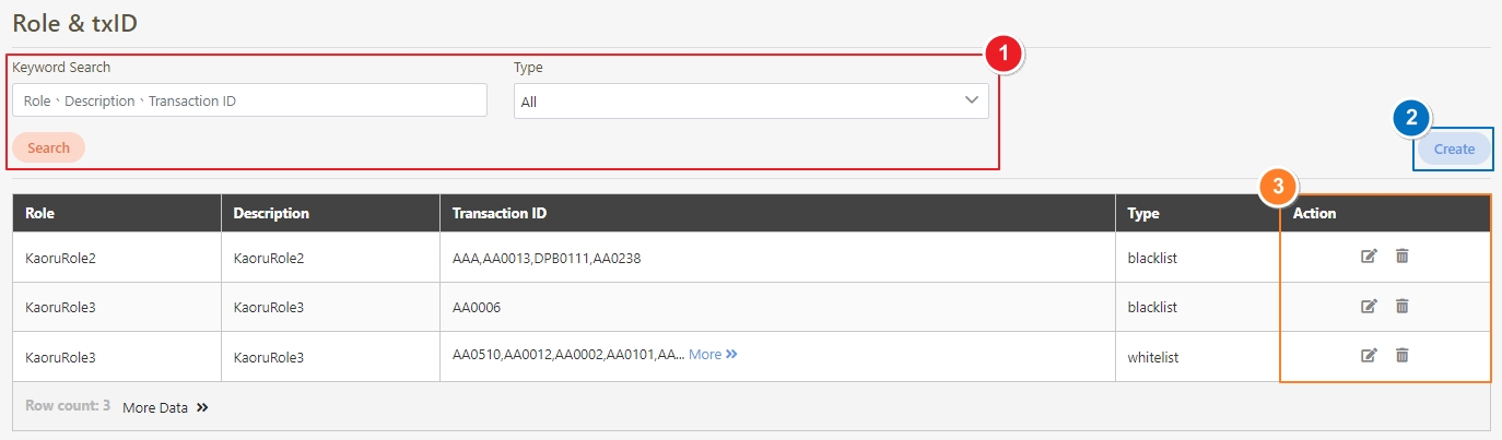 If whitelist is selected for the list type, and the function clicked was not created in the Transaction ID* of the whitelist, when users operate the system, the prompt “1357 - The roles assigned to you are not authorized to call API txID [AA0510]” will appear. However, when the wrong Transaction ID is entered, the system will not show a prompt to remind you there is an error; therefore, you must be sure of the txId before entering it in the whitelist.
