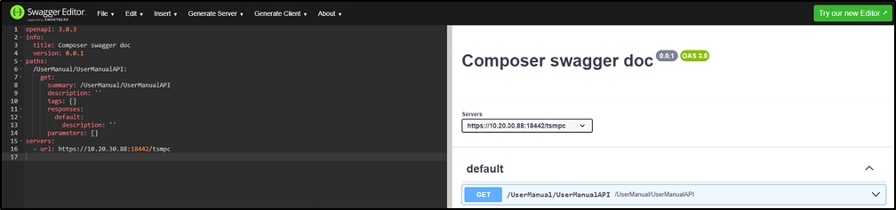 Copy the text on the Swagger page to Swagger.io to display its information.