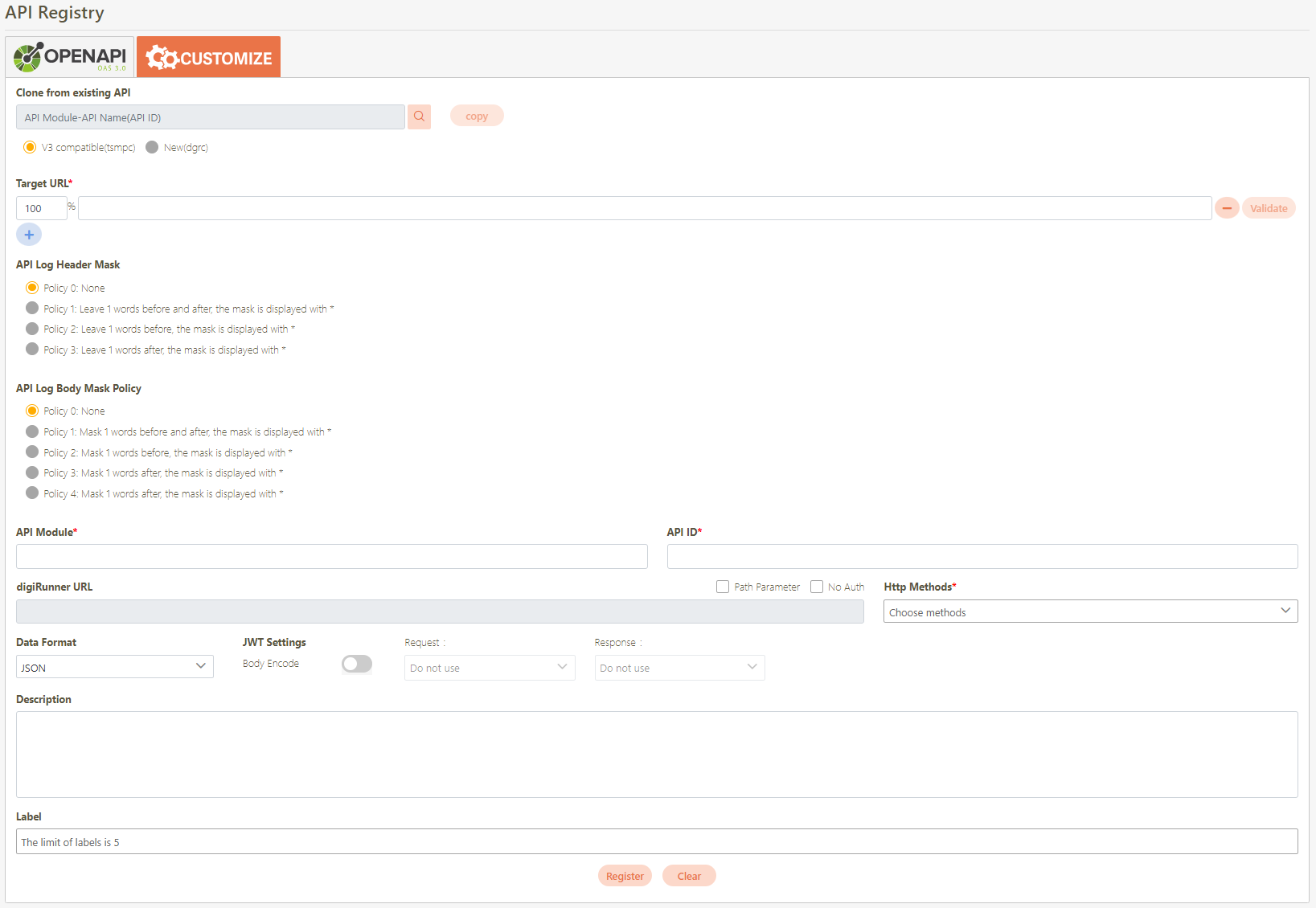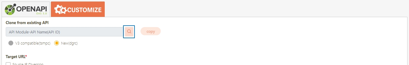 API Module*: New module name of the API; it is the URL name of this API when it can be called externally. Only alphanumeric characters, underscore “_” and hyphen “-” can be entered in this field. This only needs to be filled when V3 (tsmpc) mode is selected.