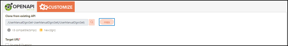 API Name*: API name; it is the URL name of this API when it can be called externally. Only alphanumeric characters, underscore “_” and hyphen “-” can be entered in this field. This only needs to be filled when New(dgrc) is selected.