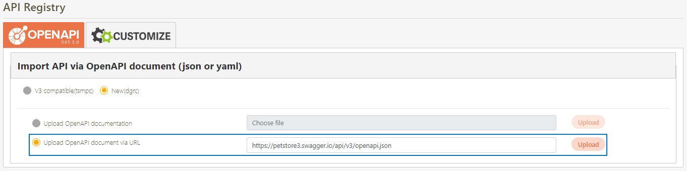 In this section, you can find instructions on how to mount external APIs onto the system using URL methods; the default mode is New(dgrc).
