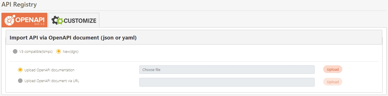 Modes: The system has two API modes, which are compatible V3 (tsmpc) and New(dgrc). Compatible V3 (tsmpc) has module names. The New(dgrc) has no module name, and provides the URL Path function.