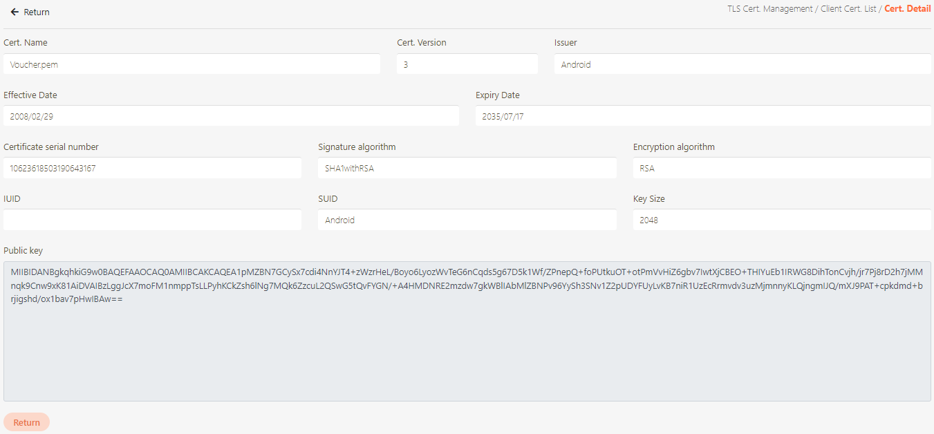icon of the client to access the certificate details page for the client. The client credential details here are more similar to entering the advanced functions of Certificate Management.