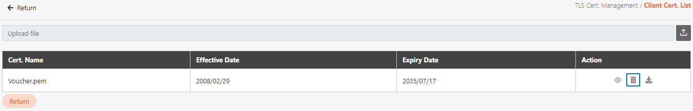 After users upload credentials, client credential details can be viewed, credentials can be downloaded, and client credentials can be deleted. Credentials that will soon expire will be presented with red texts.