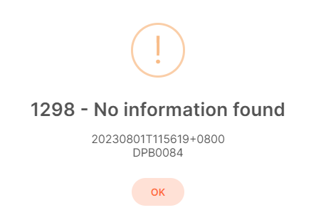 Upon deleting credentials, the prompt displaying “1298 - No information found” will pop up. Click OK to exit.