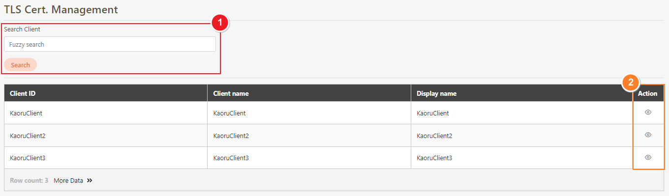 The system can search API clients, view, upload, delete, and download the TLS certificates of the client.