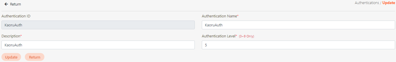 Defining the authentication method required for the API in the system can help users quickly identify the API type and functions when creating API groups; for example: Which APIs will be used for setting the authentication method of the online bank. This page can only query / add / modify / delete authentication methods, but APIs are not added from here.