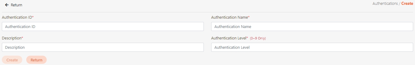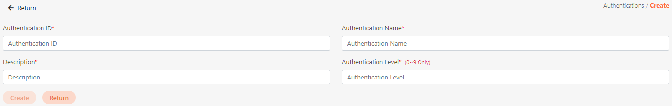 Authentication ID*: Code to identify the authentication; limited to alphanumeric characters, underscore (_) and hyphen (-).