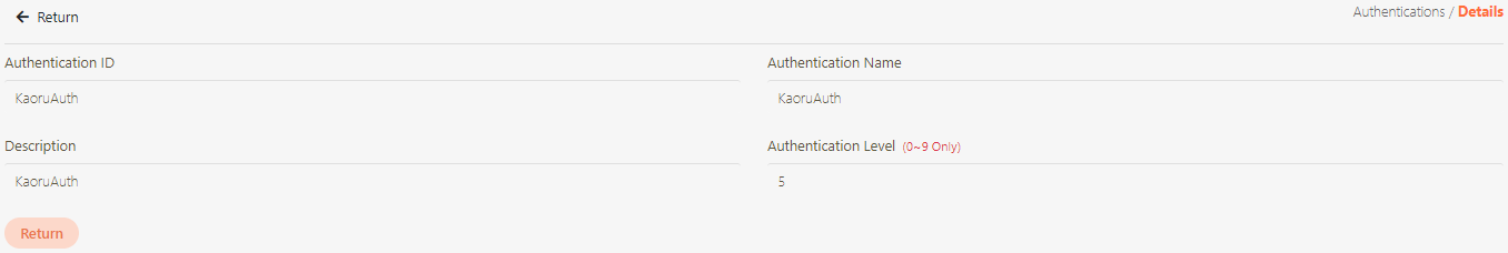 Authentication Level*: No implemented function in the system. It provides information to TSP, and when TSP implements (customer operation) the authentication, it will decide whether secondary authentication is required.