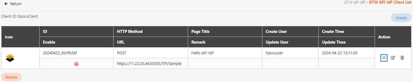 To view the details of GTW API IdP, you can search using the relevant information as keywords, and click on the