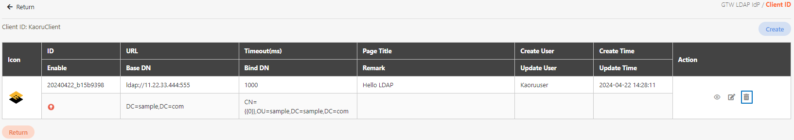 To view the details of GTW LDAP IdP, you can search using the relevant information as keywords, and click on the