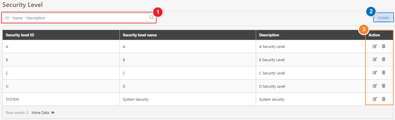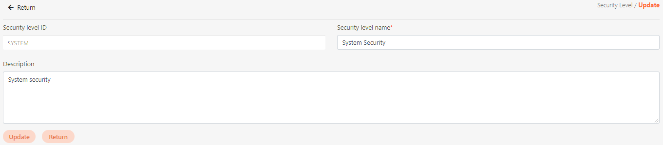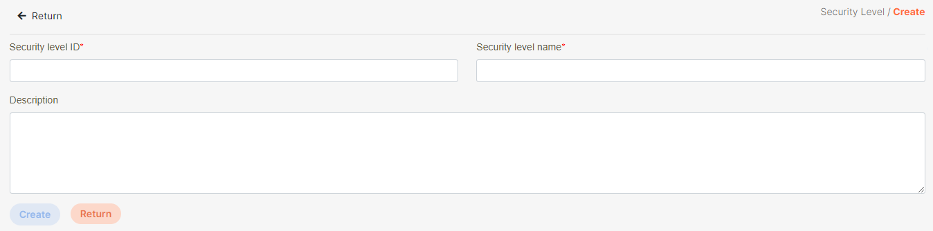 Security level name*: Name that can identify the security level; it will be displayed in API Client and API Group.