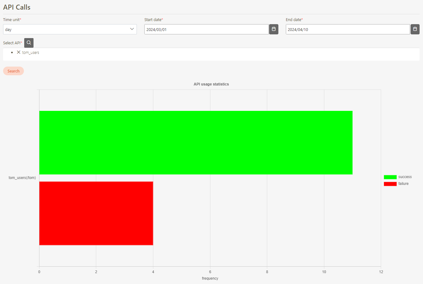 Click Search to display the usage count report of this API.
