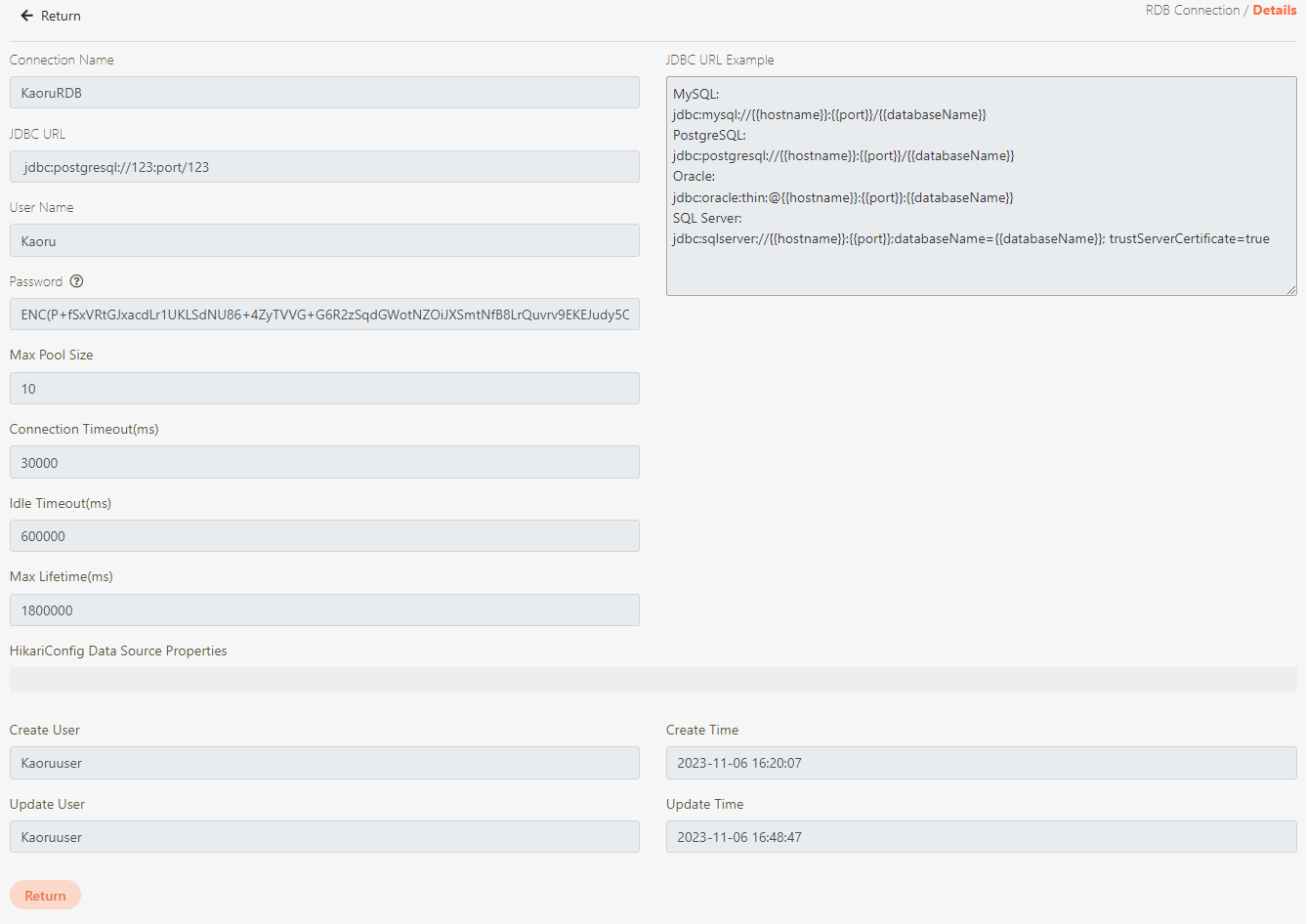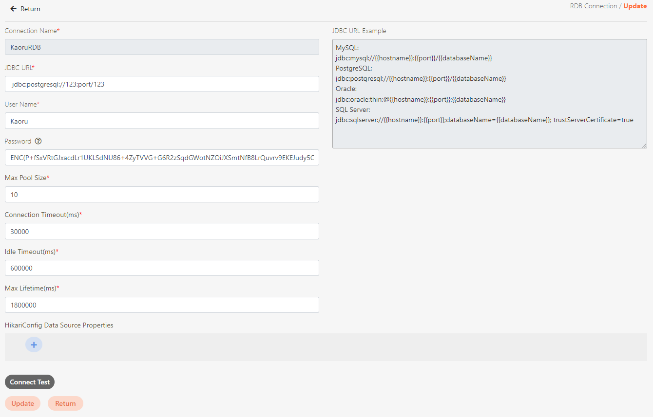 Idle Timeout(ms)*: The timeout for idleness. After establishing a connection to the database or remote servers, if the connection remains inactive for a certain period, the system will automatically close the connection.