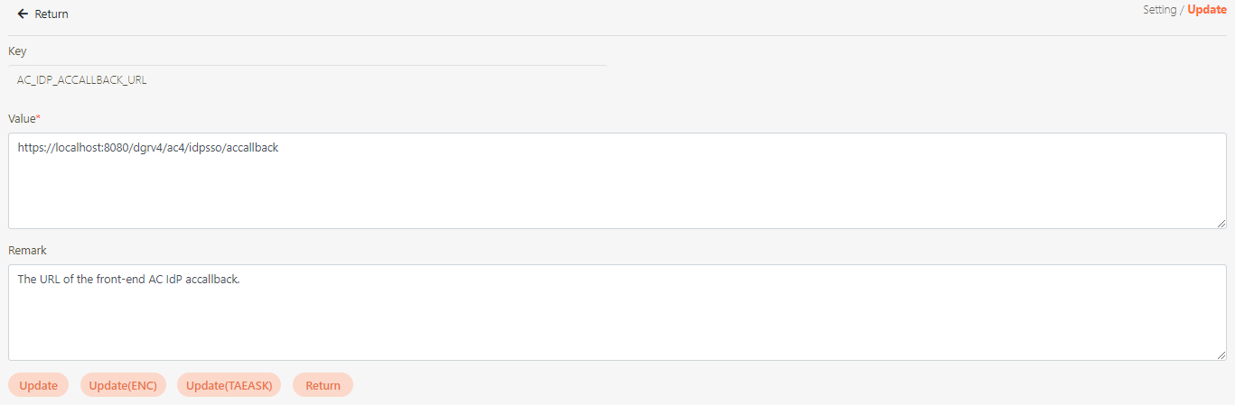 Most items are necessary settings required for system operation; if users change them randomly, it may result in system errors, such as: Setting AUTH_CODE_EXP_TIME is an instruction file used to set the expiry time (ms) for Auth code; this function is similar to the registry in Windows. Do not change them by yourself without the instruction of TPIsoftware personnel.
