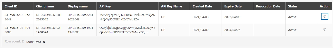 Start and end dates or entering keywords can be used to search for the API key, and click on theicon to query its details.