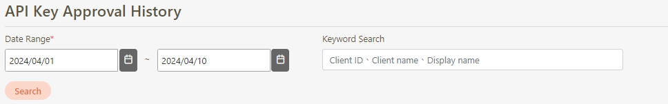 Specify start and end dates for Date Range, or enter keywords in the Keyword Search field to search for the current status of API key.