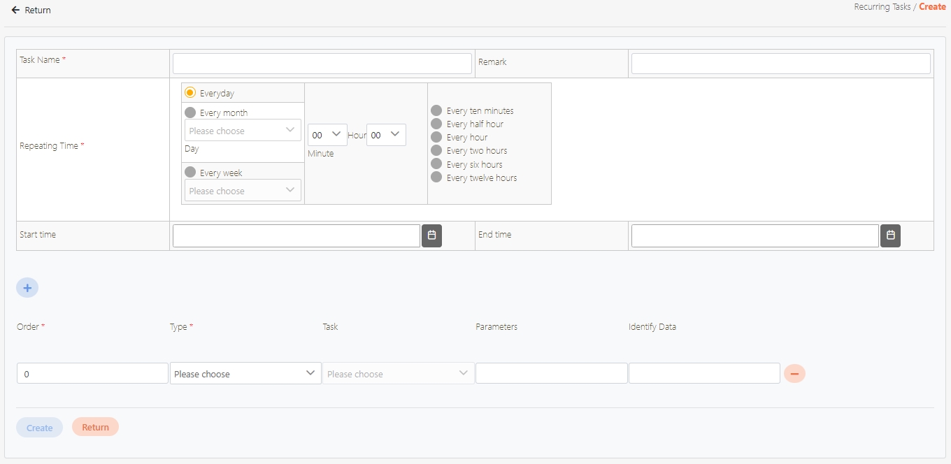 Recurring tasks is used to schedule tasks, as instructed in the following sections.