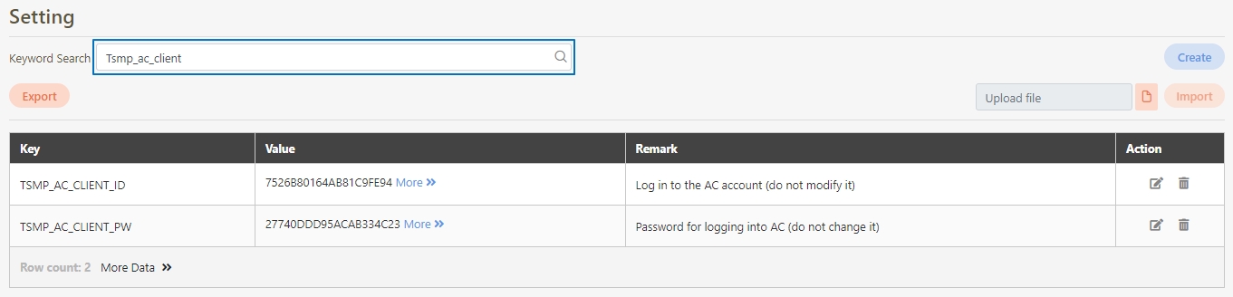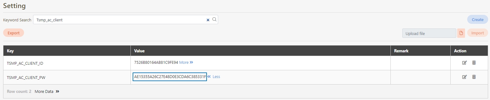 Go to Setting and search for Tsmp_ac_client. You will see that the password has now been changed.