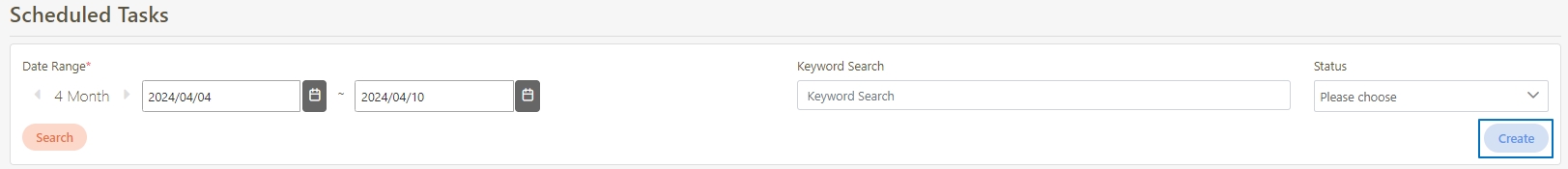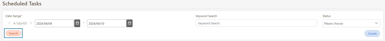 Start and end dates or entering keywords can be used to search scheduled tasks.