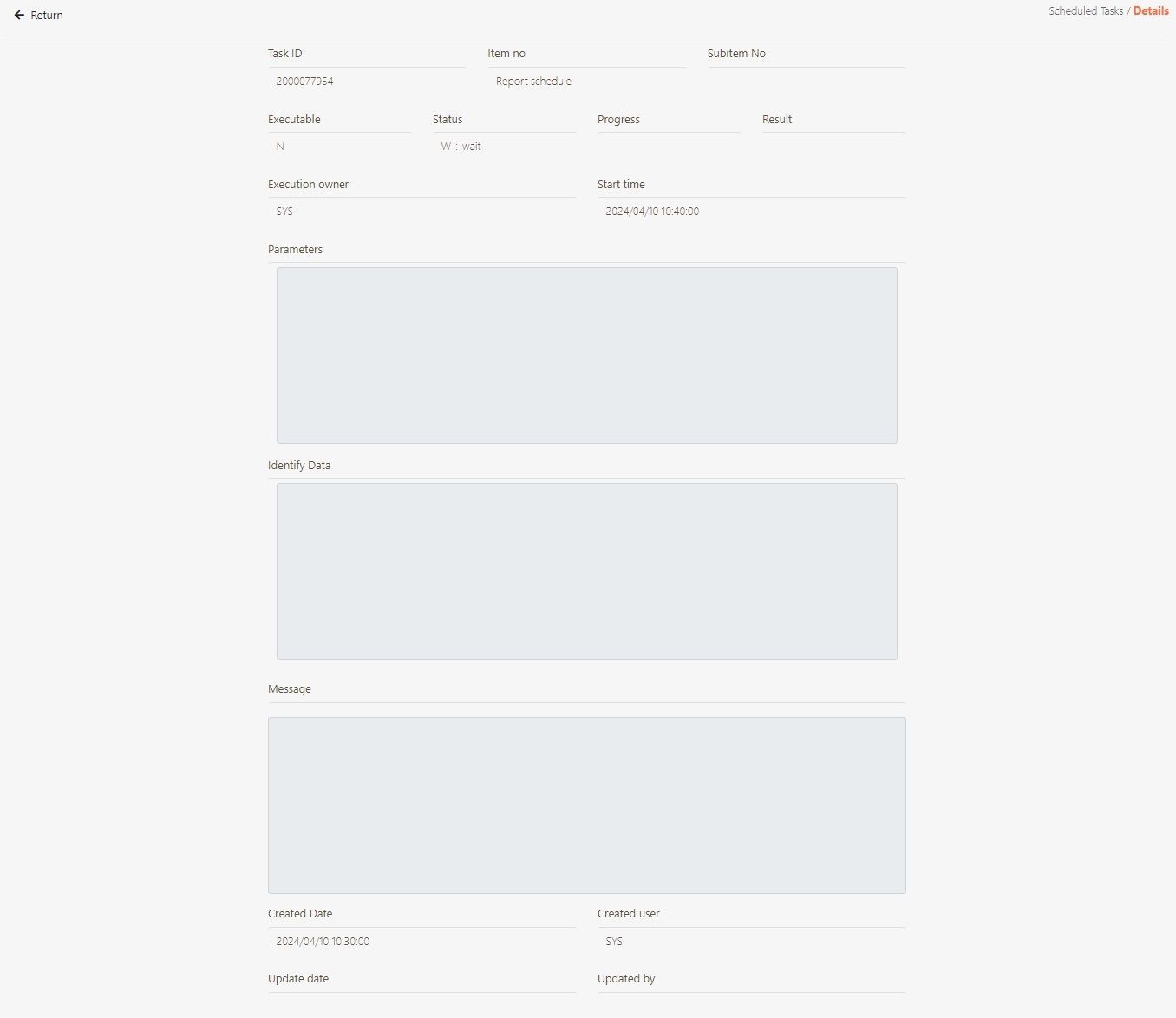 Identify Data: If it was not entered by the creator, when the system executes the schedule, the system will establish the default format, which can also be used for remarks.
