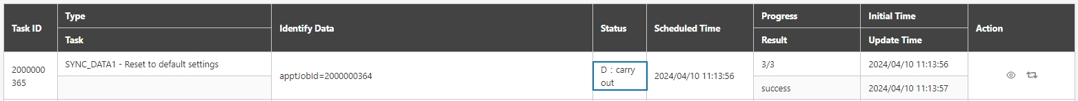 When the schedule status is ➌D: carry out, ➍E: failure and R: Executing, it can be redone.