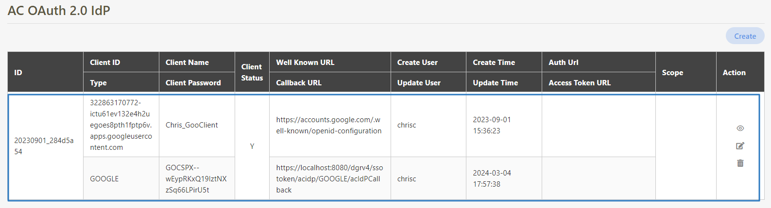 After clicking Create, the created OAuth 2.0 IdP data can be seen in the AC OAuth 2.0 IdP list.