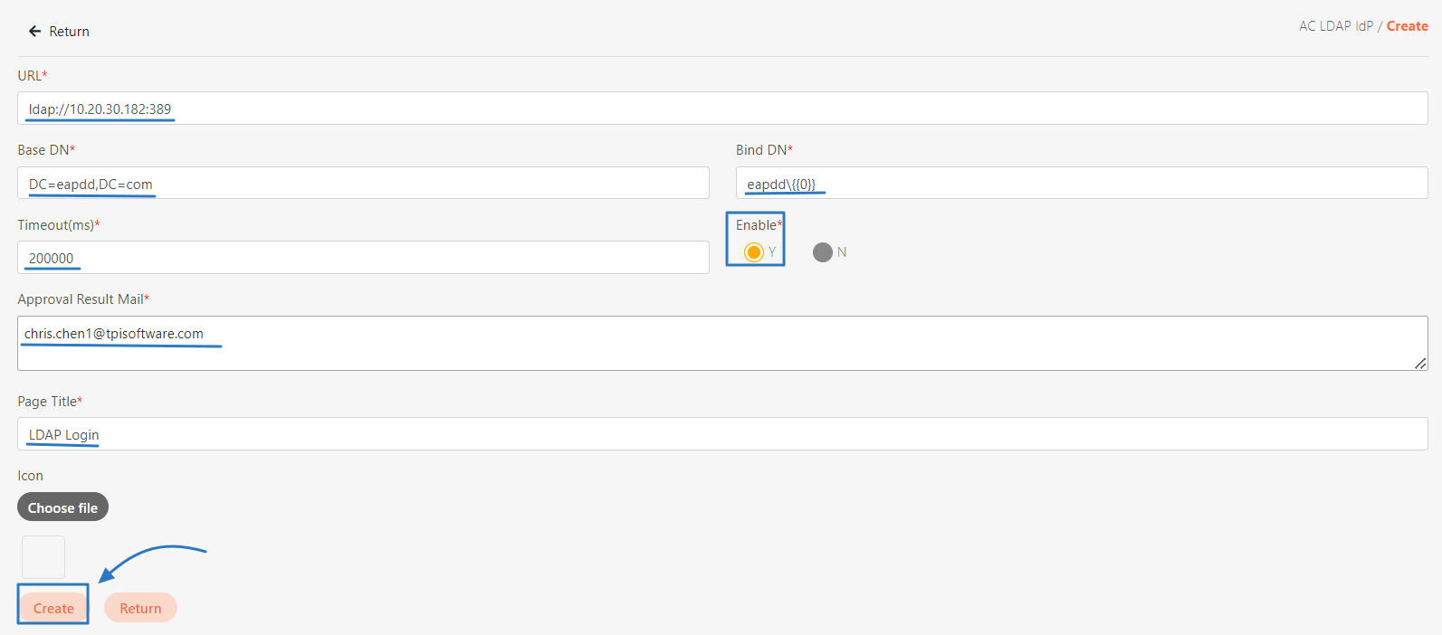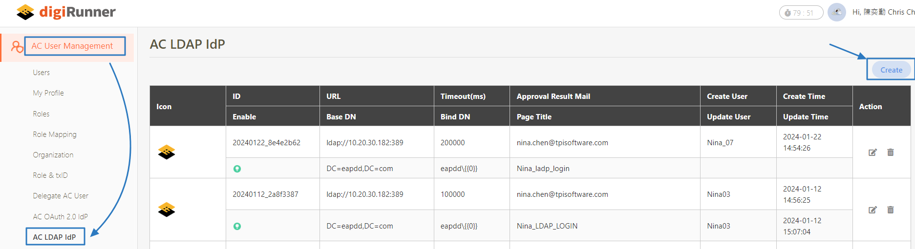 Go to AC User Management > AC LDAP IdP, and click Create.
