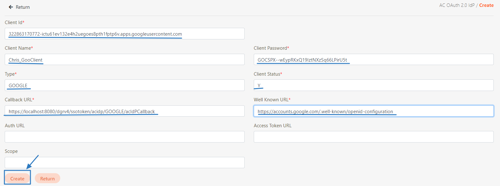 Well Known URL*: Fill in the URL, https://accounts.google.com/.well-known/openidconfiguration.
