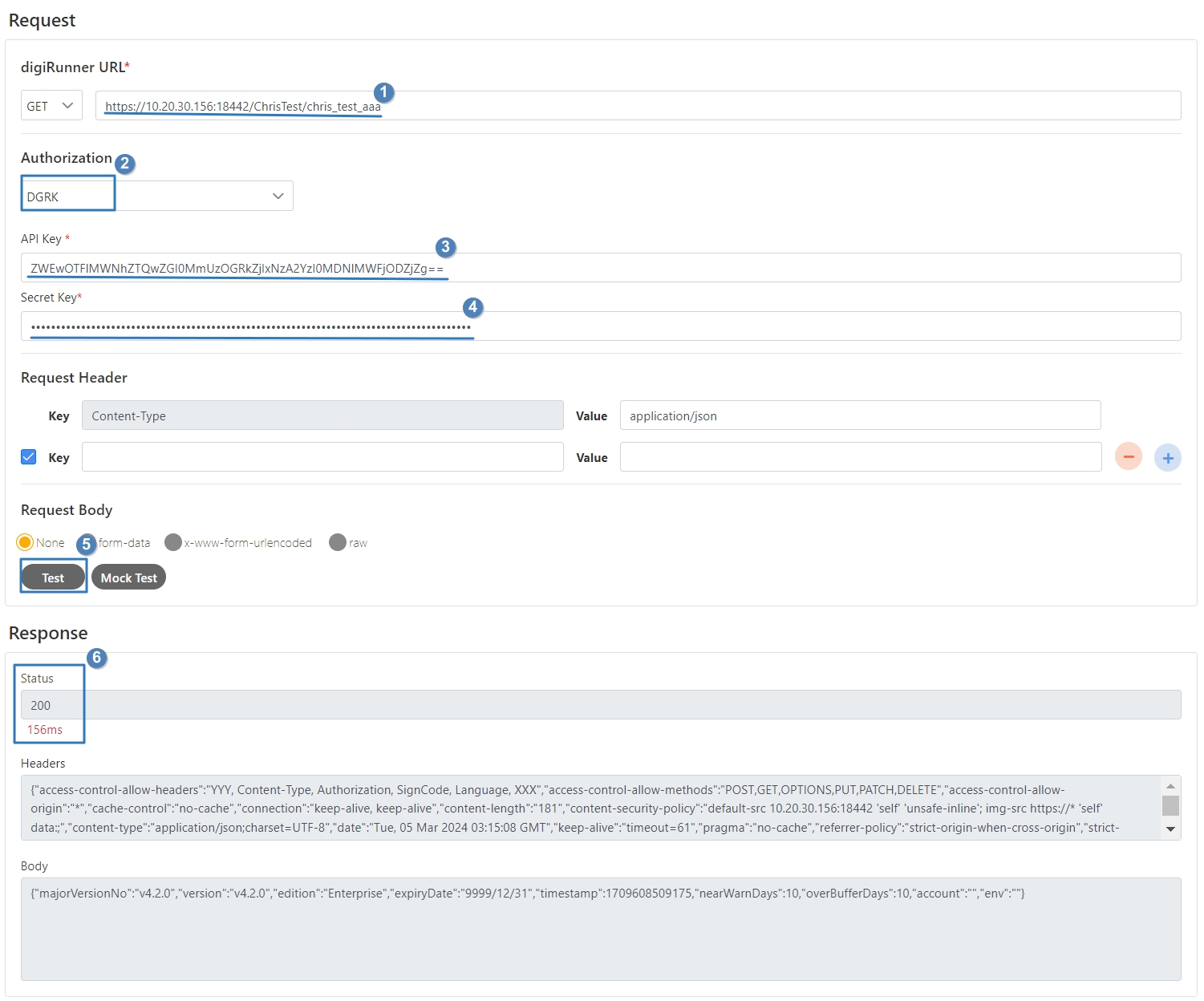 APIs registered in the system can use different OAuth Grant Type for verification, including: Client Credentials, Password, Basic, Auth and DGRK.