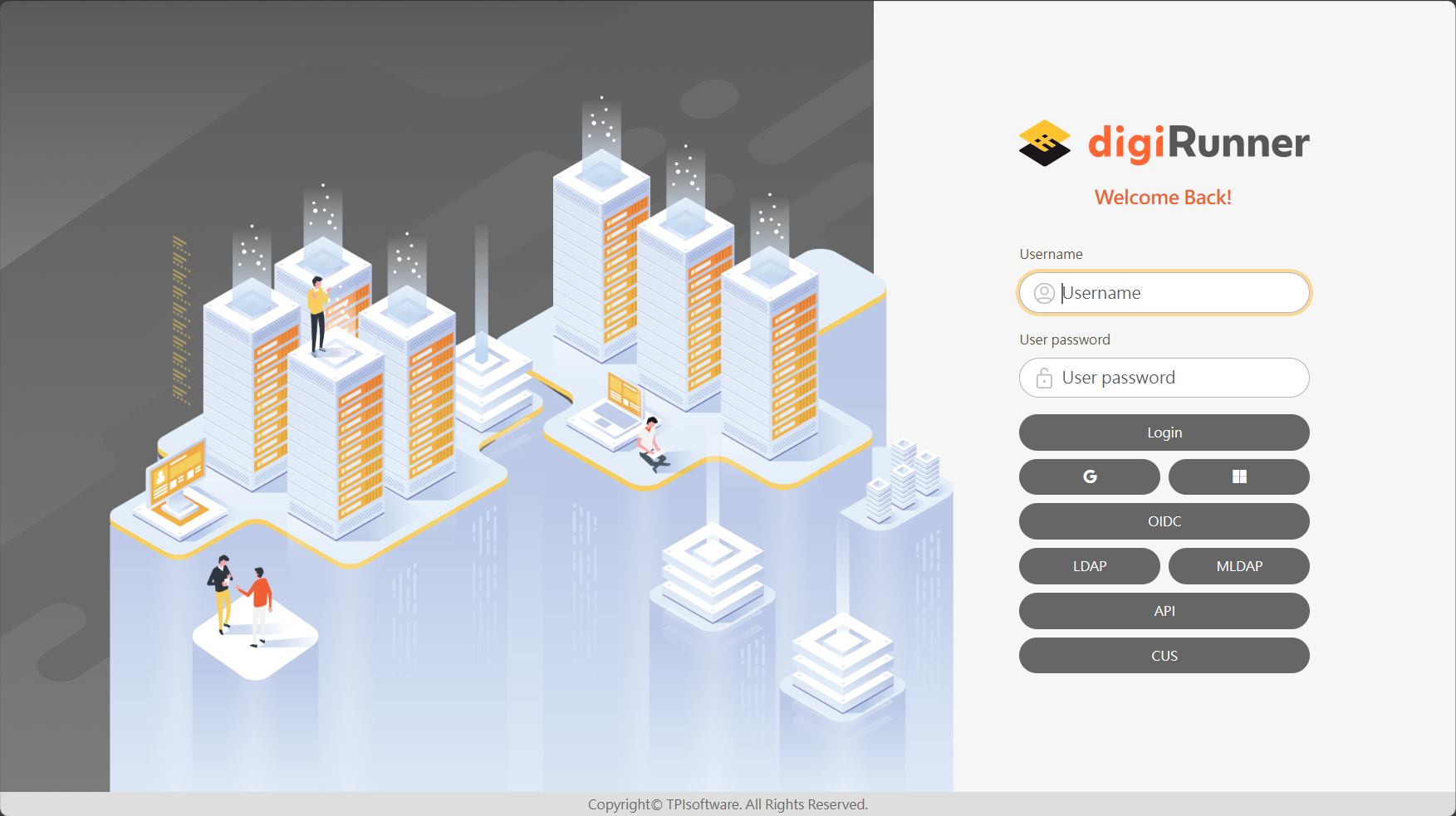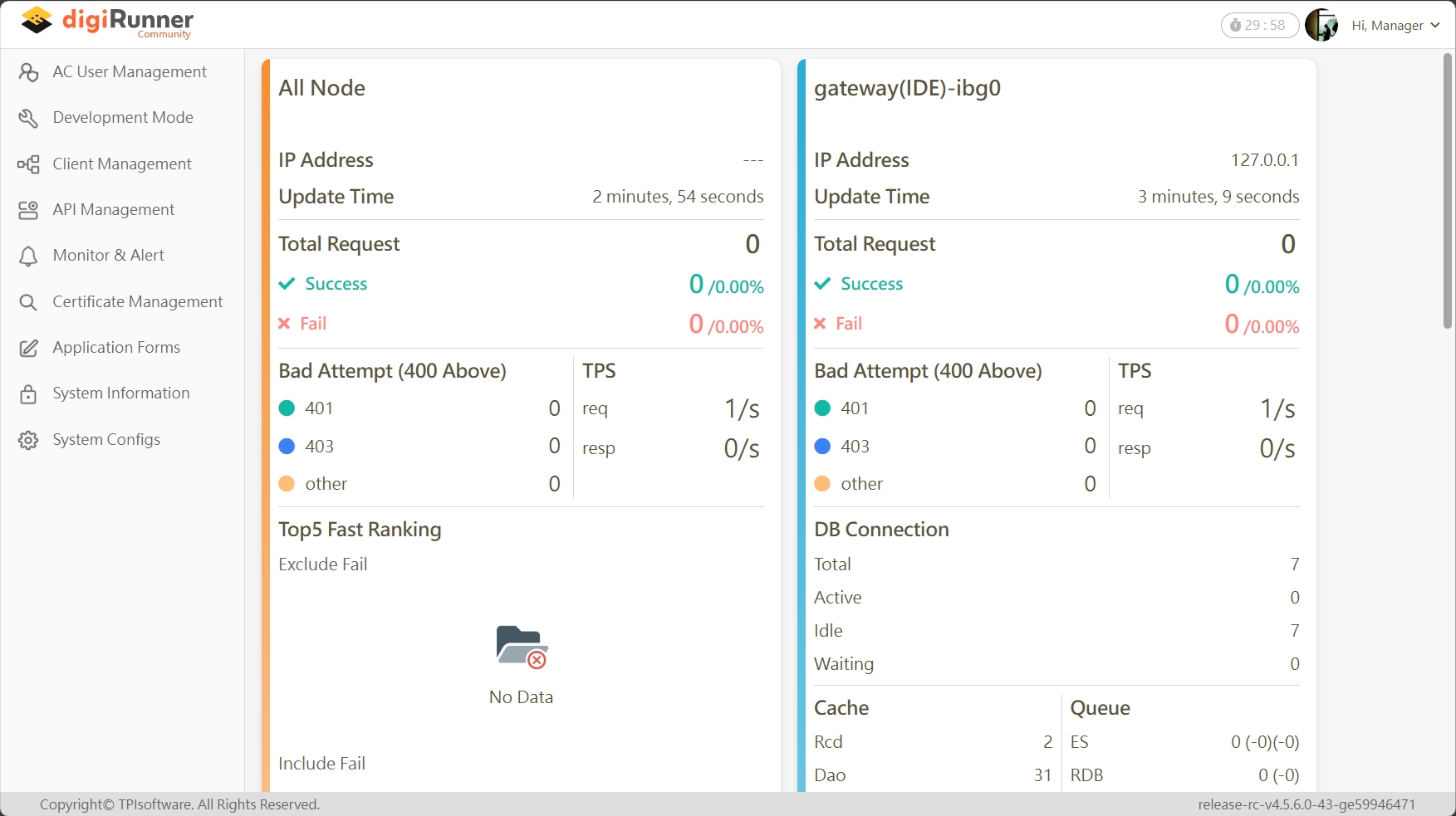 Upon successful login, you will see the text digiRunner Community displayed in the upper left corner.