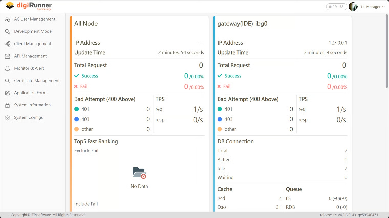 Upon successful login, you will see the text digiRunner Community displayed in the upper left corner.
