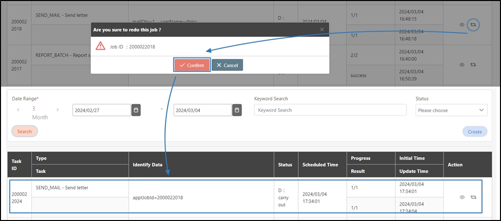 (Redo) icon, and click Confirm to re-trigger the mail sending task.