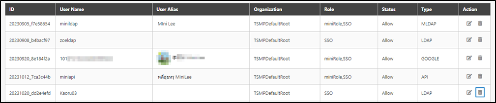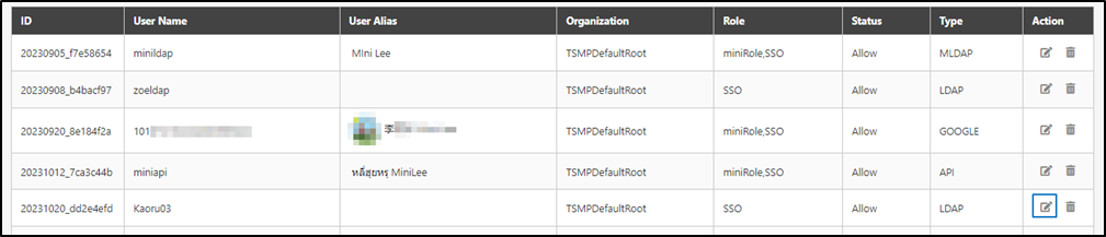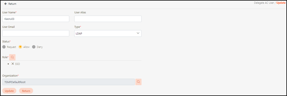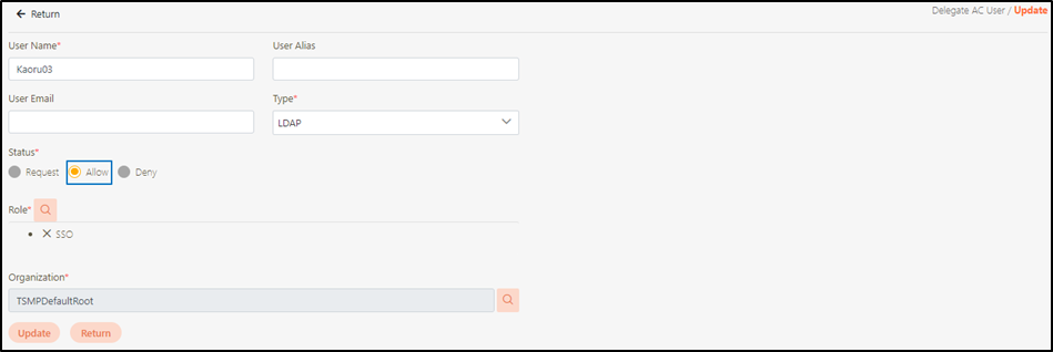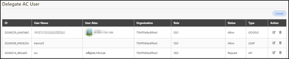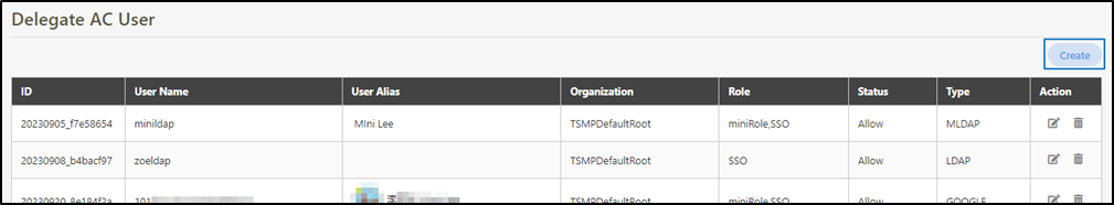 Go to AC User Management > Delegate AC User to view the users created by SSO, and click on the