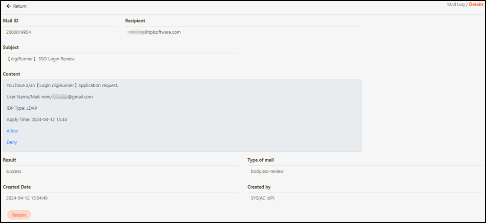 Go to System Information > Mail Log to check whether an approval letter has been sent.