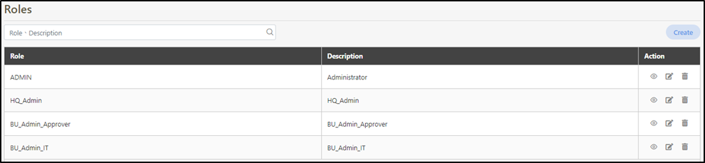 Click Create to access the role creation page.