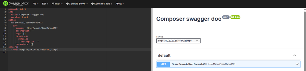 Copy the text on the Swagger page to Swagger.io to display its information.