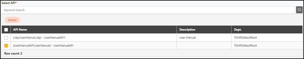 If the wrong API was selected, select the wrongfully selected API, and click Delete to remove it.