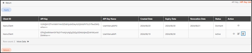Manage API Key Status