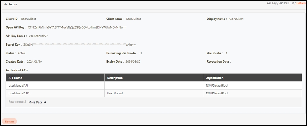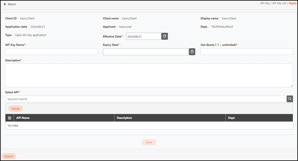 API Key allows you to request an API key for clients.