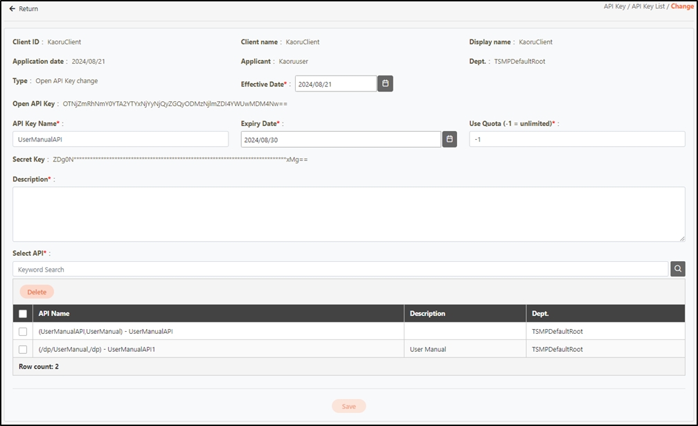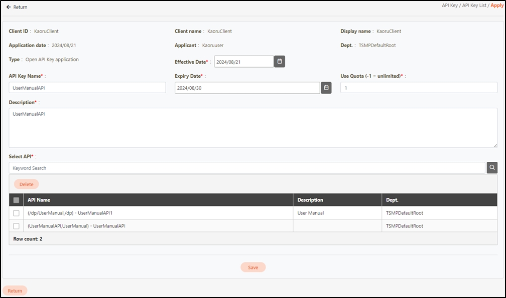 After submitting the API Key application form, please follow digiRunner’s approval process to complete your request. For detailed information about the approval steps, refer to Approval Flow & Applications, or view the full application process in this section: Obtaining API Keys and Calling APIs.