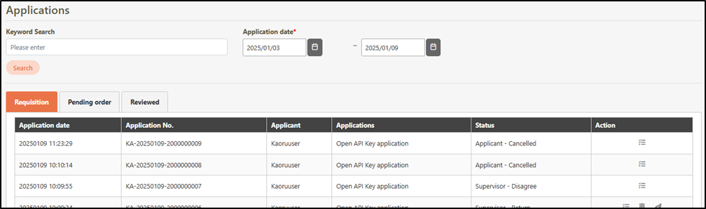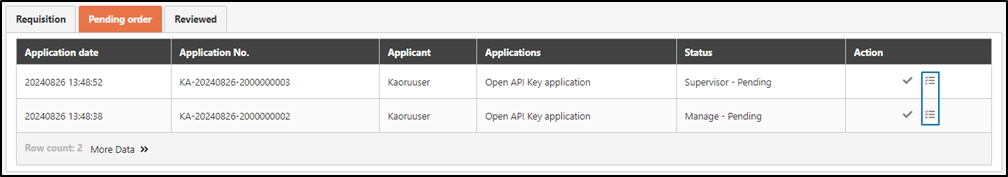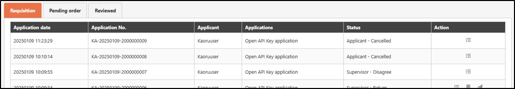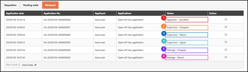 Under the Reviewed tab, you can view the approval results of applications, including those approved under the Pending order tab and those closed by applicants. The system will also send an approval notification email to the applicant.